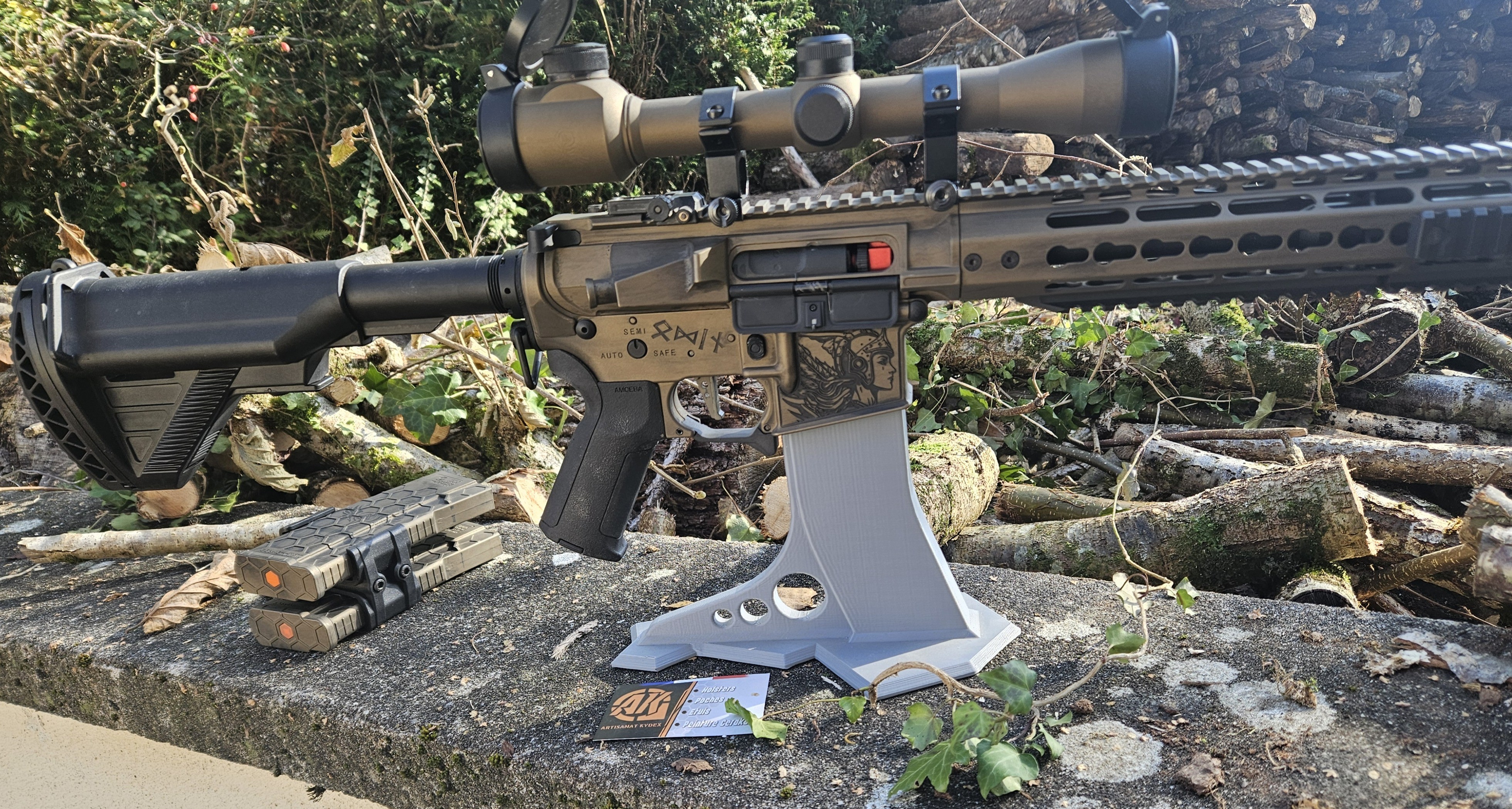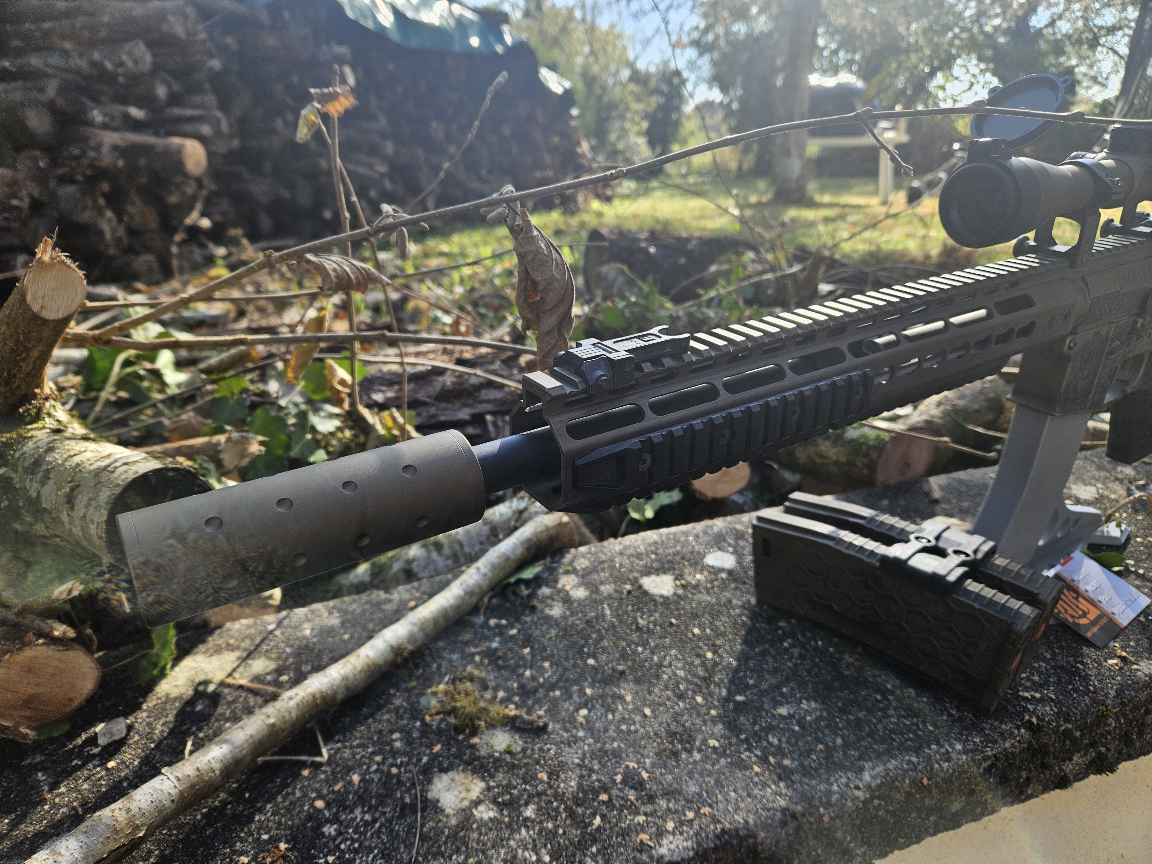 fournie avec lunette cerakote et 2 chargeurs hexmag 120 coups custom cerakote egalement.